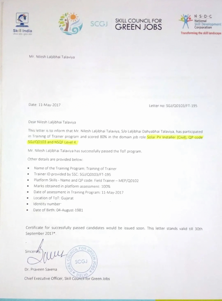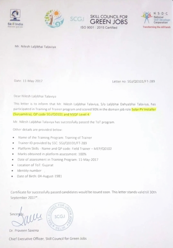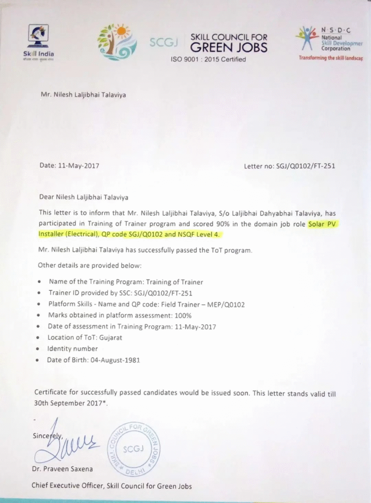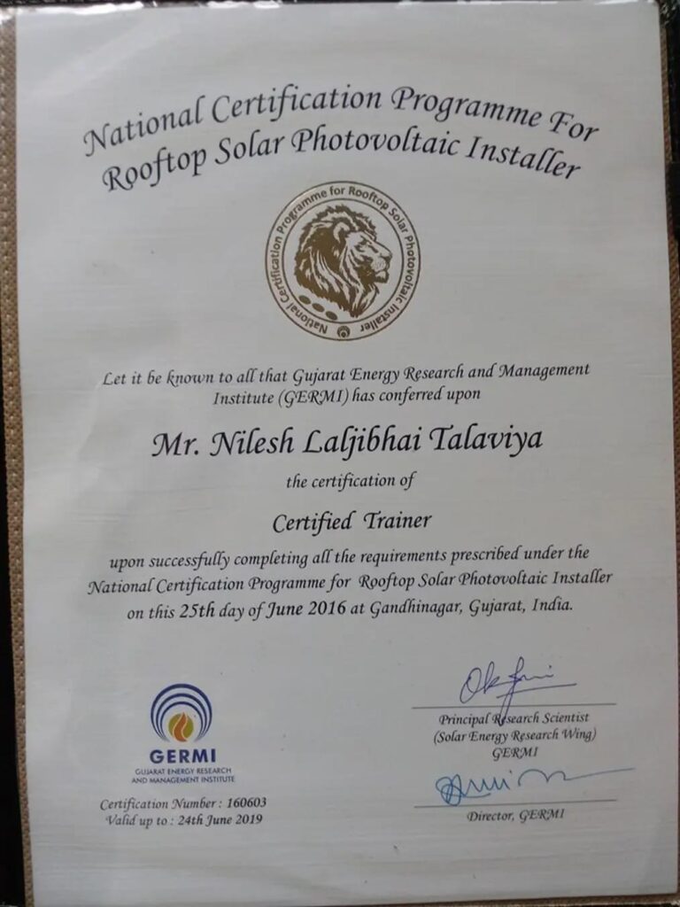 Our founder and technical team hold certifications in Electrical, Civil and Suryamitra programs ensuring safety, compliance and quality.